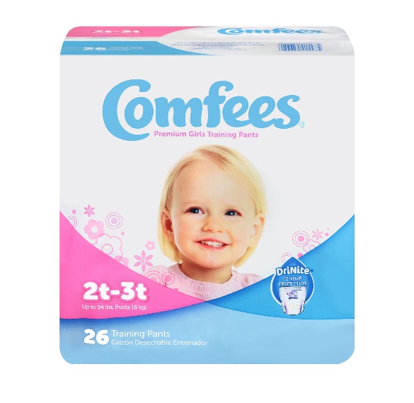 Comfees® Premium Training Pants are offered in fun boy and girl designs that kids will love and will help aid in the training process. Training Pants have soft, stretchable side panels that pull on like real underwear, easy, tear-away sides for quick removal, and are perfume and latex free.